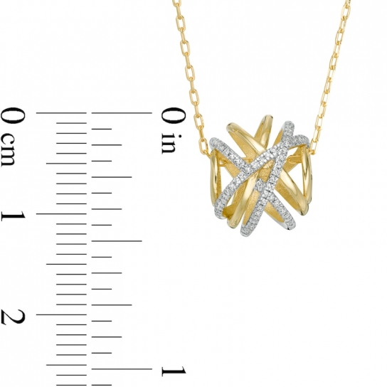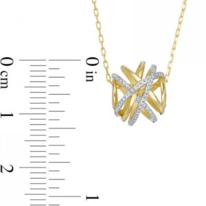 Fashioned in warm 10K gold, this orbit-style design features an open-worked knot of polished and diamond-lined ribbons. Radiant with 1/15 ct. t.w. of diamonds and a brilliant buffed luster, this pendant suspends along an 18.0-inch cable chain, with an additional closure ring at 16.0 inches, that secures with a spring-ring clasp.This exclusive fine jewelry collection inspires you to wear your strength, confidence and power.