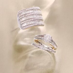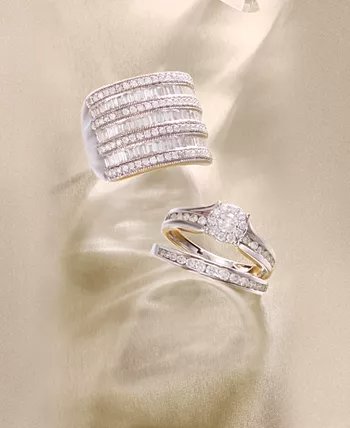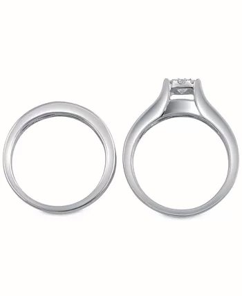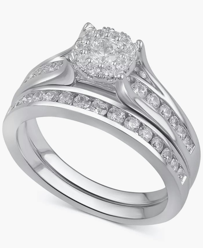 It’s all about the elegance with this romantic round-cut diamond bridal set (1 ct. t.w.) featuring a stunning engagement ring and matching wedding band adorned with channel-set diamonds. Crafted of 14k white, yellow or rose gold.