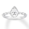 Engagement rings take stunning styles the jewelry designer is known for and elevate them with independently certified diamonds. This incredible ring displays a 1-carat, pear-shaped diamond traced in round diamonds as the brilliant focal point. Sparkling marquise-shaped diamonds dance across the band to complete the look. Fashioned in elegant 14K white gold, the ring has a total diamond weight of 1 1/2 carats.