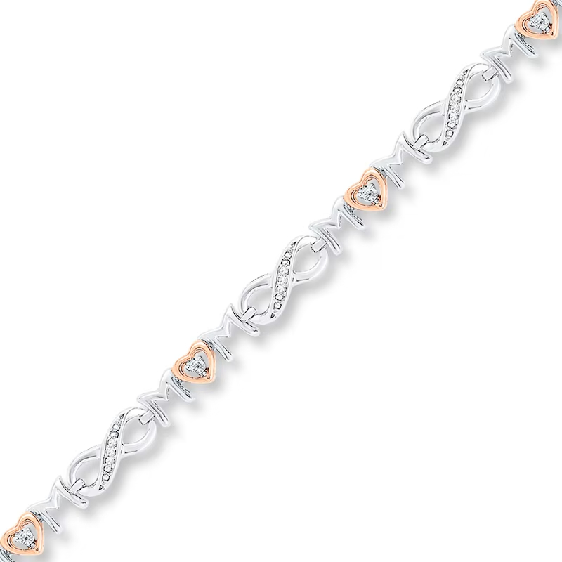 Mom Bracelet 1/10 ct tw Diamonds Sterling Silver & 10K Rose Gold