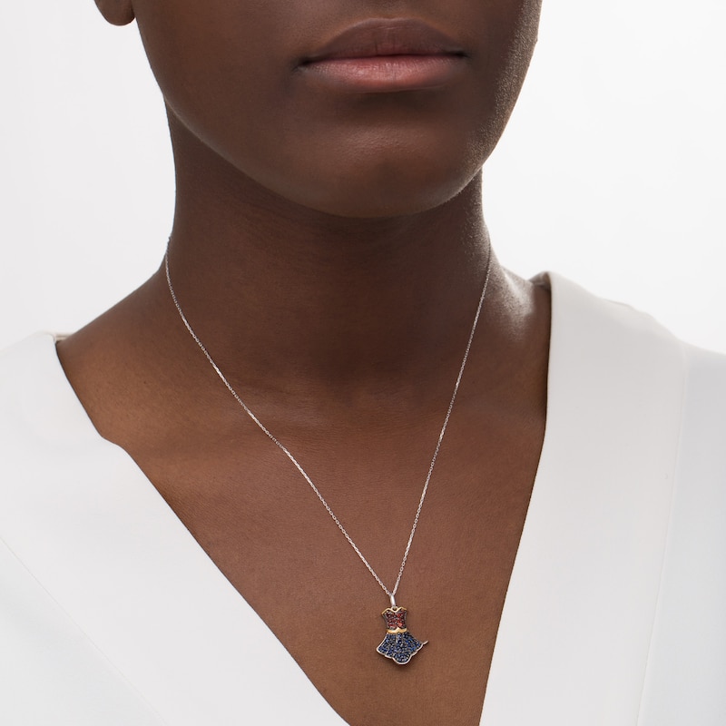 Inspired by her impeccable style, this gemstone pendant Created in sterling silver, this epic choice showcases a sculpted dress with regal red garnets along the bodice and bright blue sapphires along the layered skirt. 10K gold accents complete the look. Buffed to a brilliant luster, this pendant suspends along a 16.0-inch cable chain with 2.0-inch extender that secures with a spring-ring clasp.This exclusive fine jewelry collection inspires you to wear your strength, confidence and power.